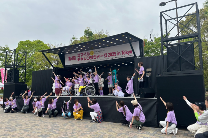 障害者と健常者の交流イベント「スマイルチャレンジウォーク」にて、4tステージトラックType-Lを導入。公園内に進入できるサイズながら高さと面積を確保し、高い視認性で来場者の注目を集めました。音響も会場全体に届きやすく、イベント内容が伝わりやすい点が評価され、継続活用いただいている事例です。
