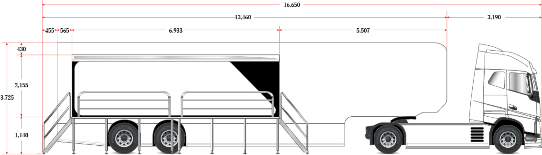 トラックの荷台部分を本格的なステージとして使用できる、イベントステージです。