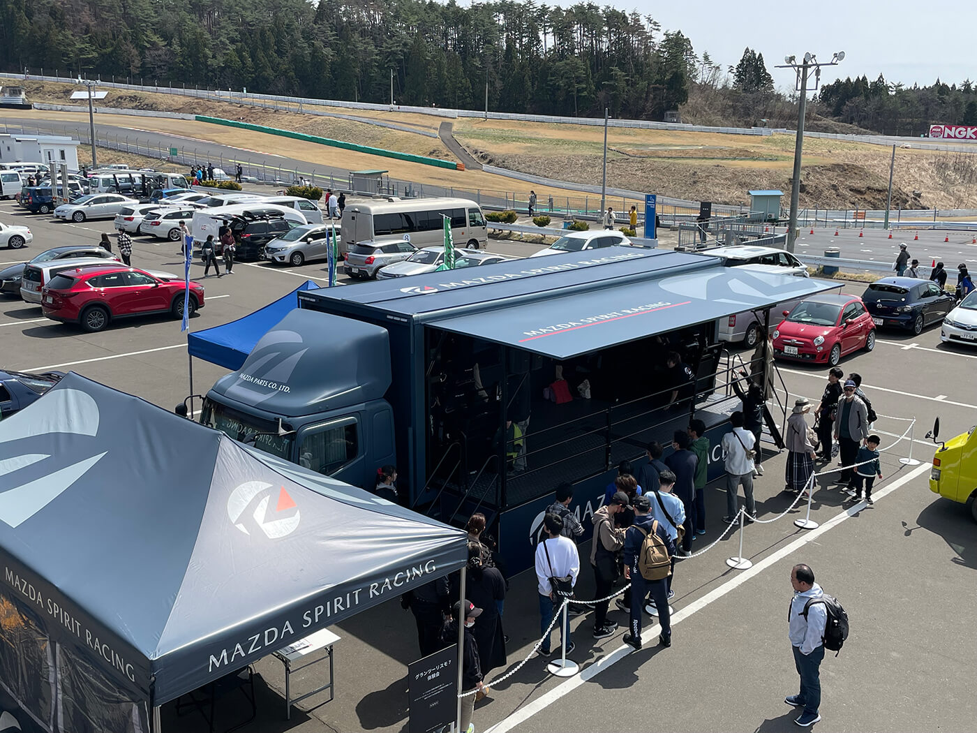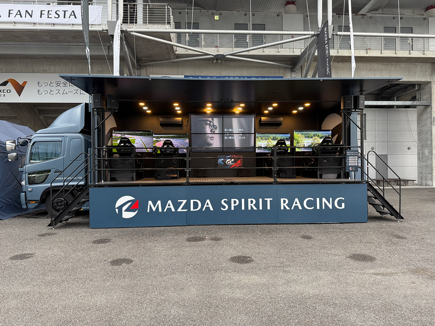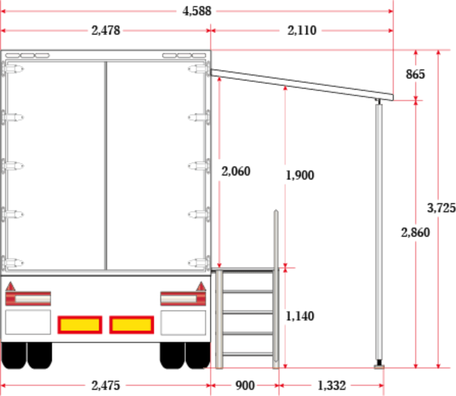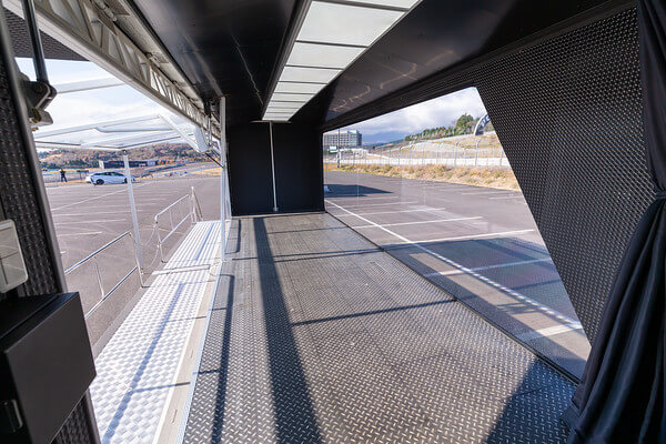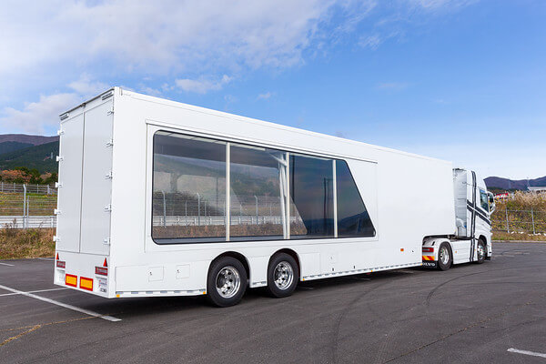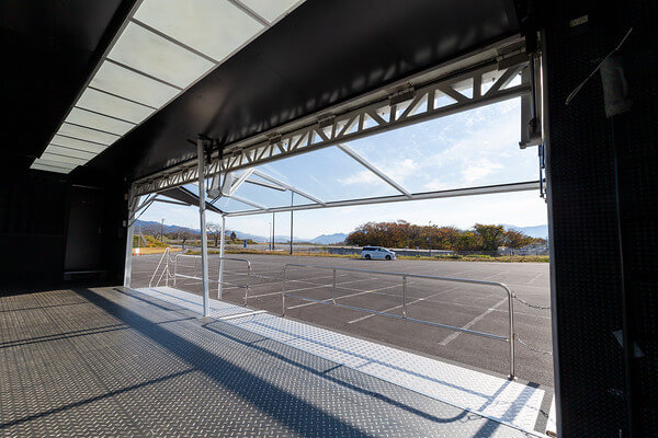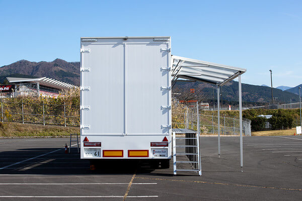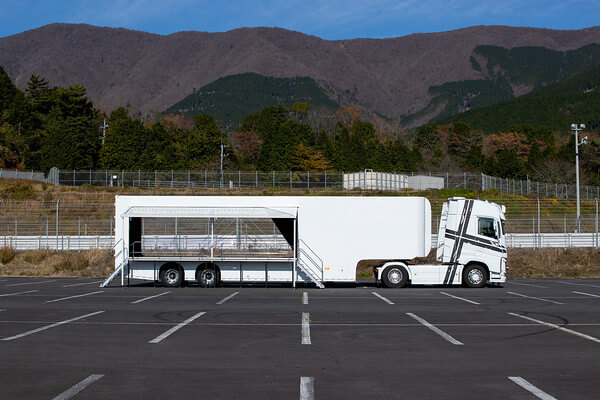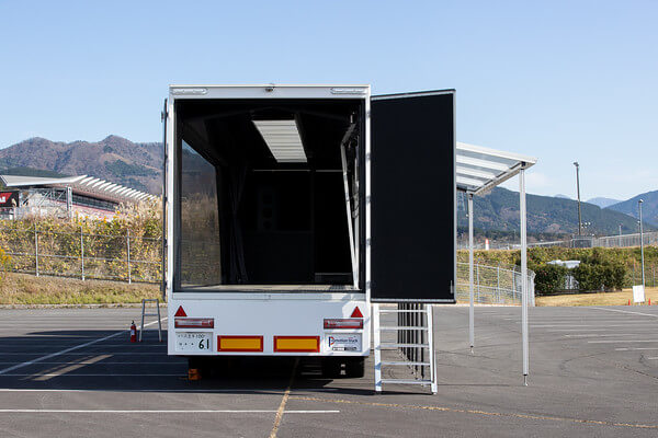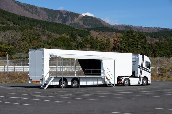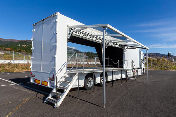 荷台部分を活用し、商品や車両などを載せたままイベントを実施できるため、展示会やイベント、各種プロモーションに適しています。 -
