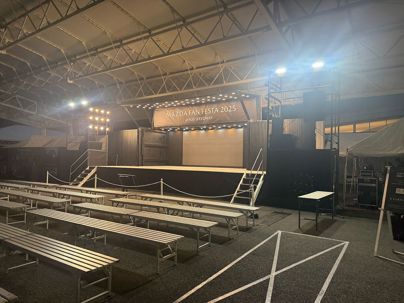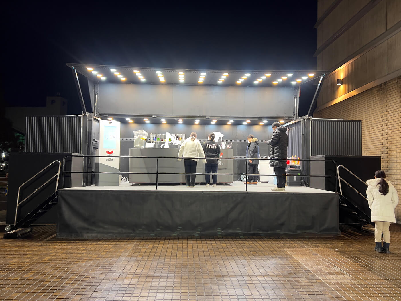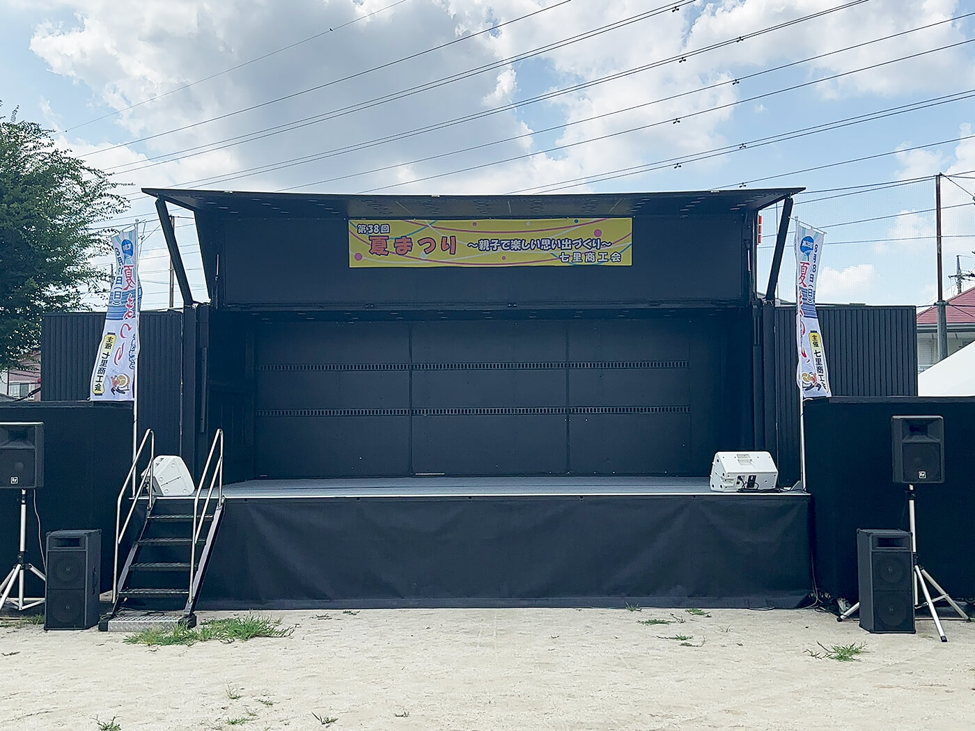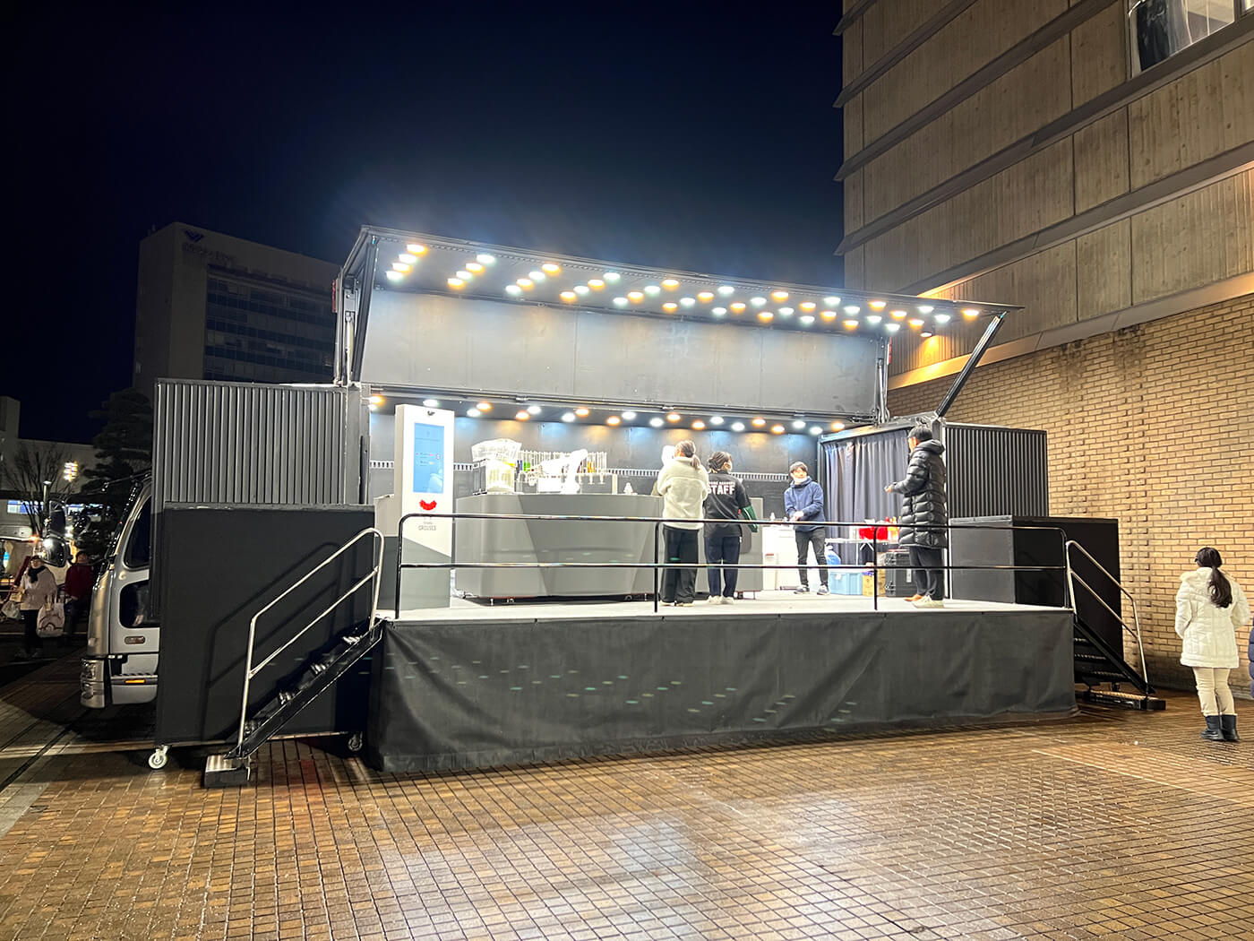 また、照明設備や音響機材にも対応しており、小規模イベントでも高い演出効果を実現。大掛かりな重機や長時間の設営を必要とせず、スピーディーにイベントを開始できる点も大きな特長です。