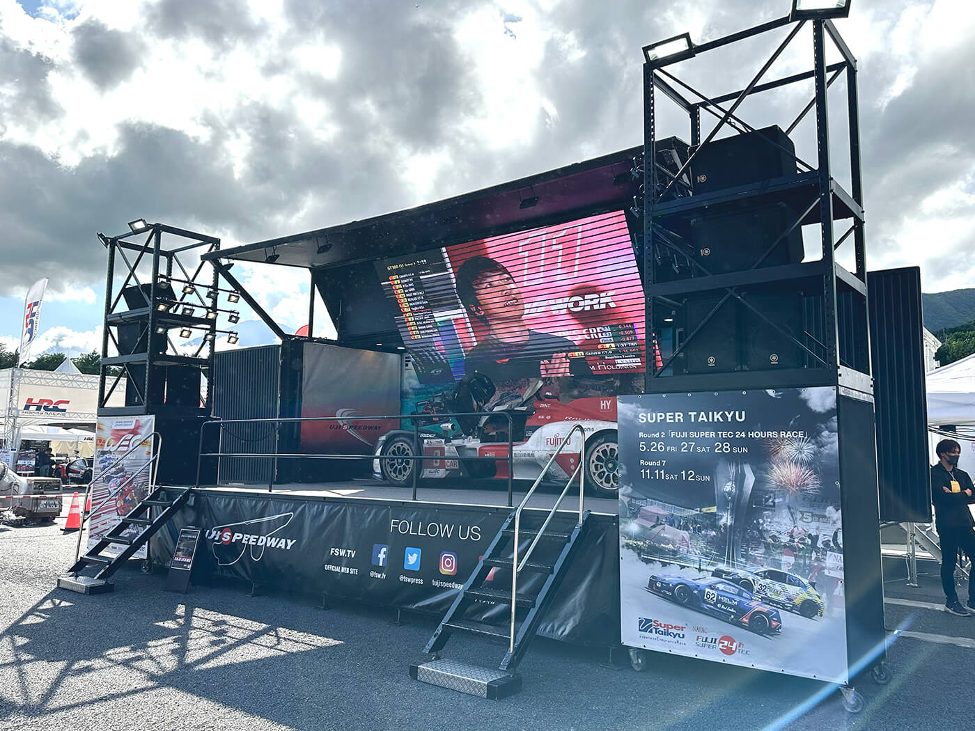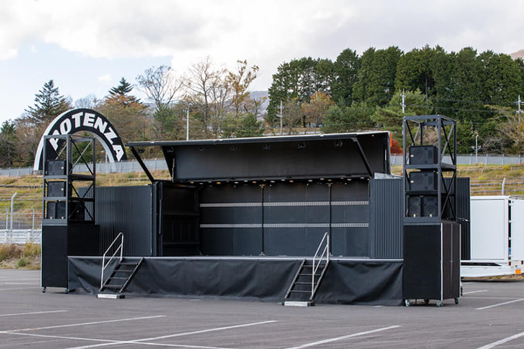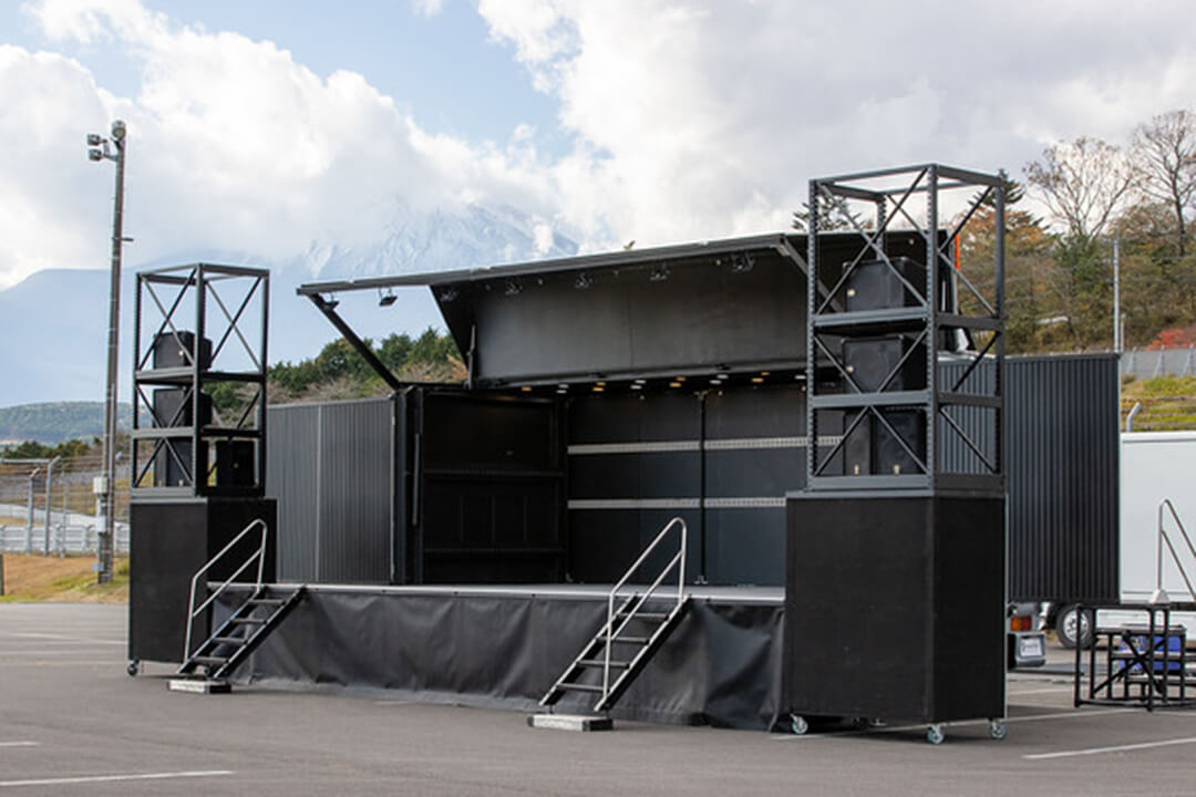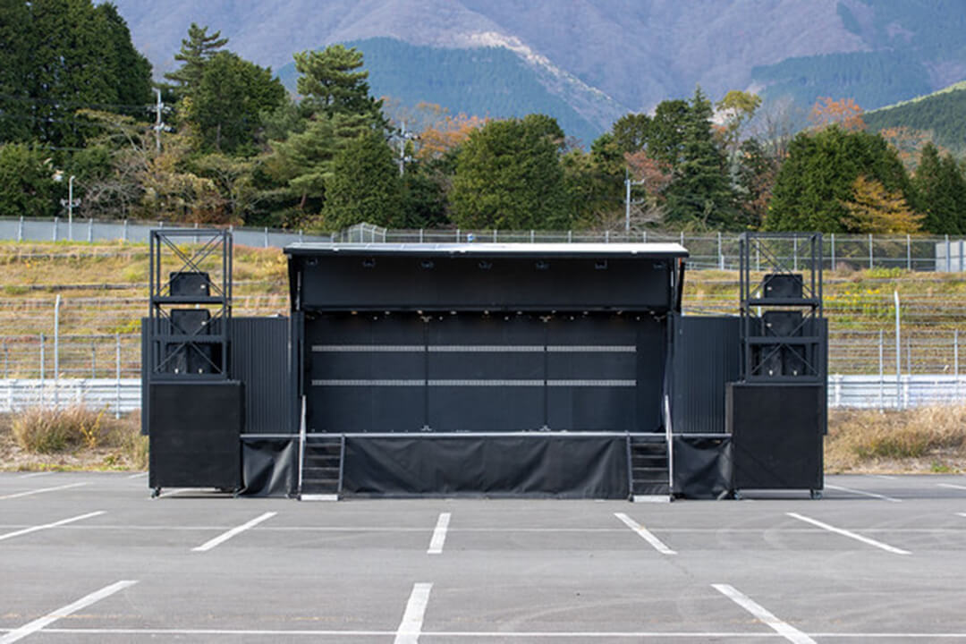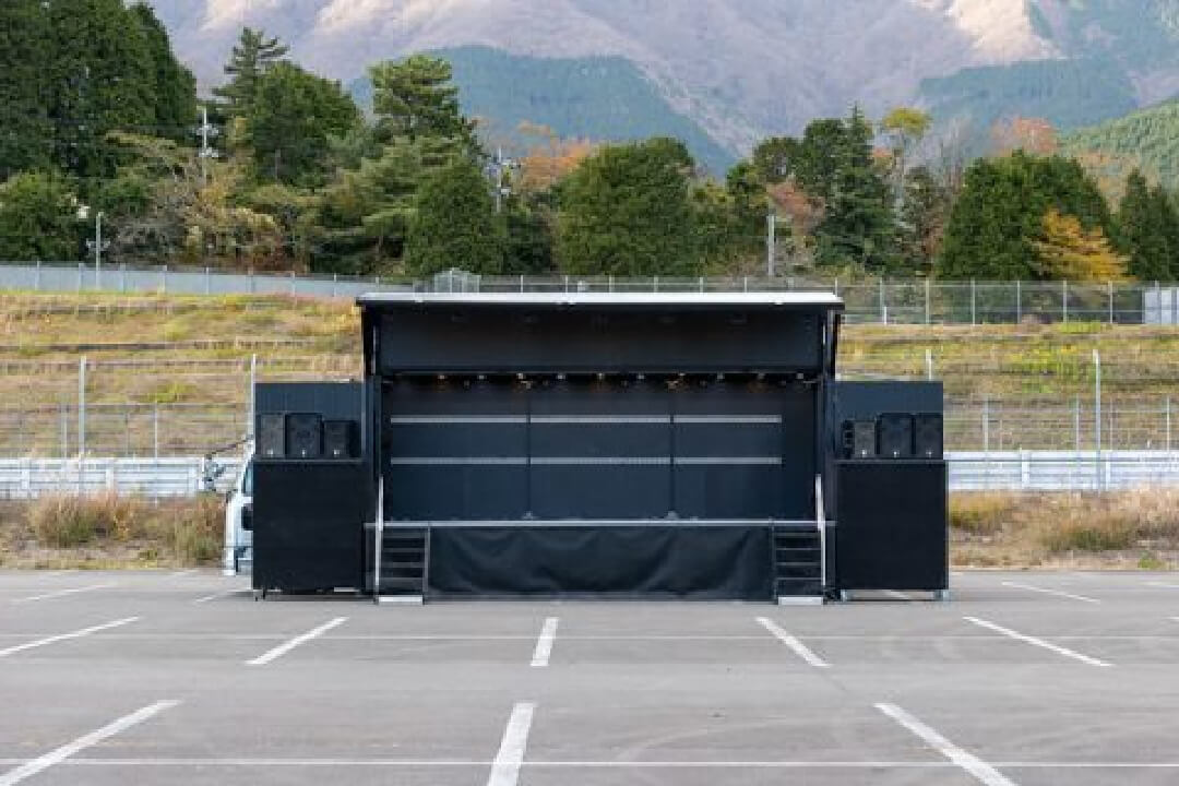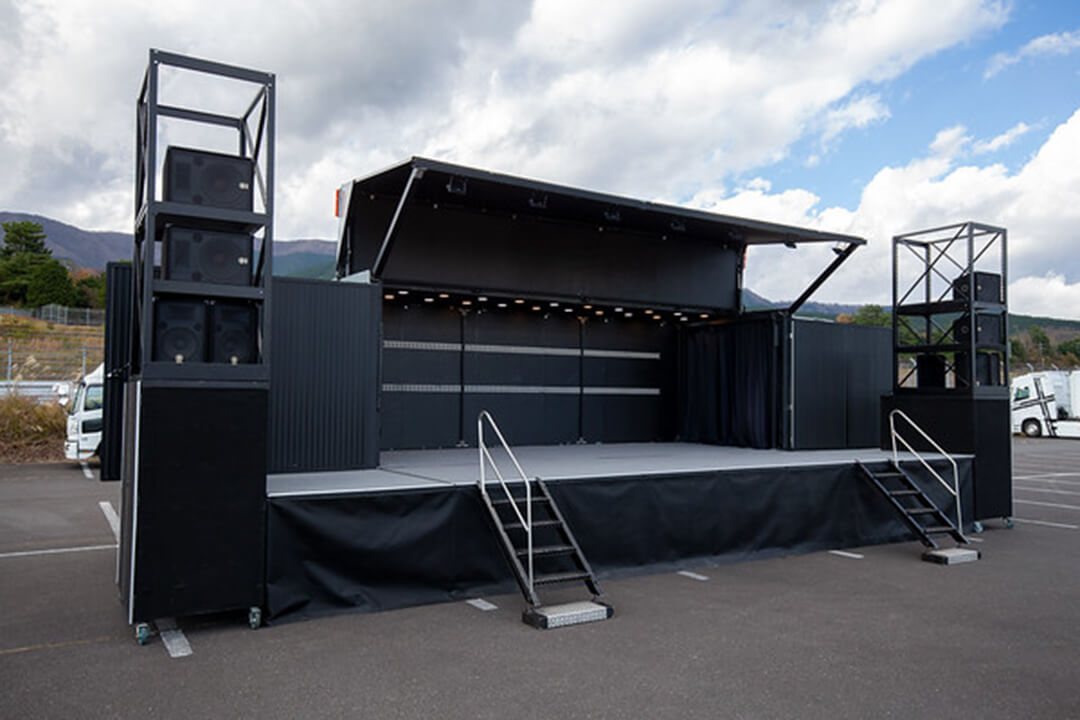 ステージ専用車両として設計されているため、安全性にも徹底的に配慮。照明設備・音響機材を活用した高い演出効果により、イベントの完成度を一段と引き上げます。